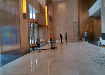 楼层开荒:事先准备梯子、伸缩杆、玻璃刮、涂水器、拖布、拖桶、垃圾铲、胶扫把、小灰刀、云石铲刀、指示牌、绿水、毛巾、香口胶溶剂等。清洁方法是先除尘、推尘,后去胶质等难以去除的污渍,最后用玻璃刮刮取墙面、玻璃、进户门外门,拖洗地面,消防通道清洁,进入下一楼层的清洁。 地面开荒“准备洗地机(也可以用高压水枪)、临时电源(或长的电源线)、胶水管、地刷、大竹扫、指示牌、雨刮、盐酸、天那水、洗衣粉、去污粉、洗洁精、小灰刀等,注意正确地使用机械。