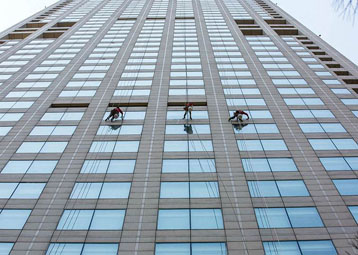 外墙清洗一般分为玻璃幕墙清洗、外墙玻璃窗清洗、外墙石材墙面清洗、外墙涂料墙面清洗、外墙瓷砖墙面清洗、外墙条砖清洗、阳光棚外墙清洗、铝塑板墙面清洗,特种清洗。 所有的高层建筑物外墙,由于常年日晒和风吹雨打,以及大气中有害的气体和油烟等污染和化学反应的侵蚀,使得建筑物外墙产生了污垢和风化,既影响了建筑物的标致和市容,又损坏了建筑物。因此,清洗建筑物的外墙,不仅美化了环境,而且起到了保护建筑物的作用。